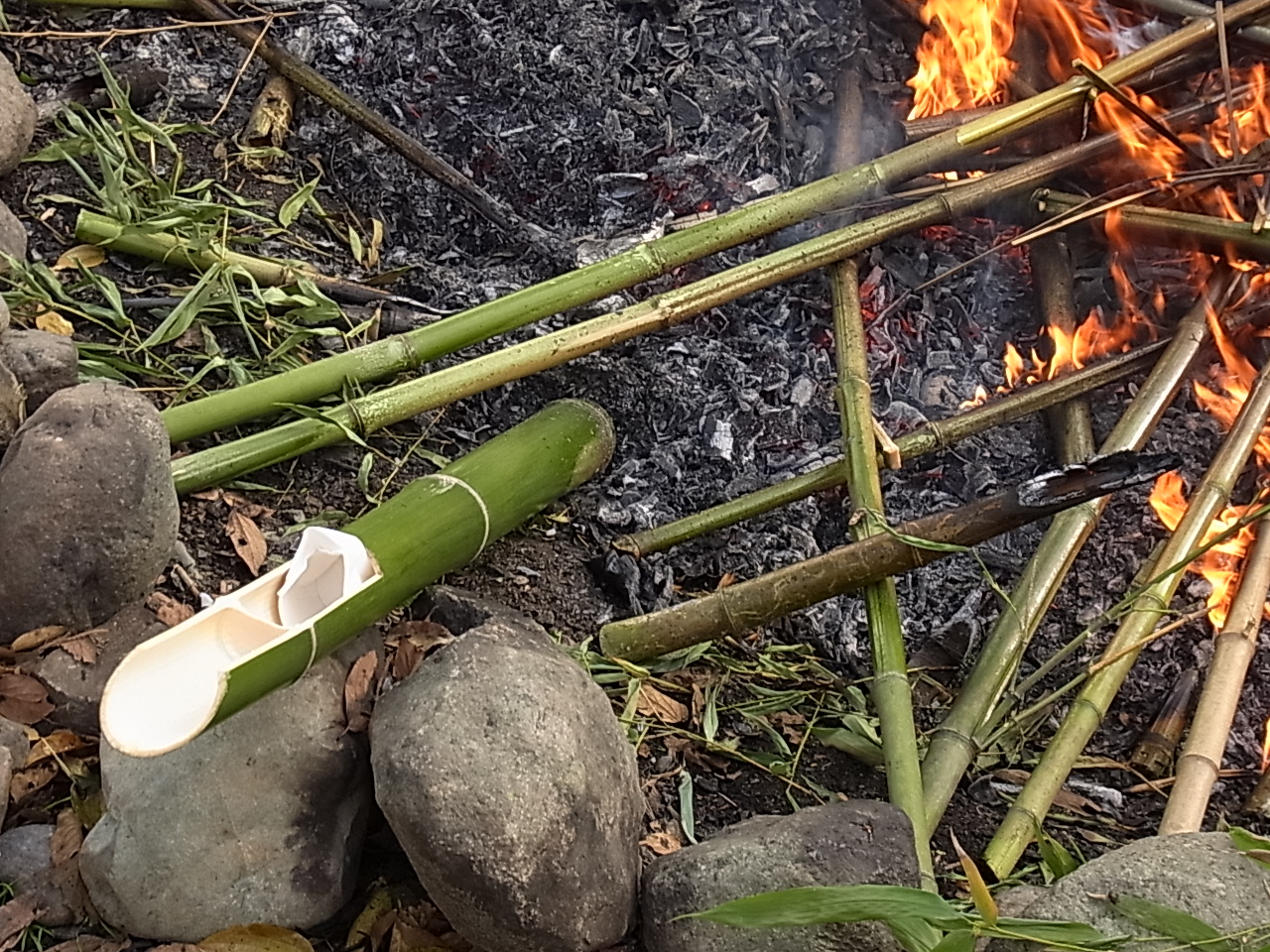 火を焚き、竹で自分たちの食器を作ることから復興の第一歩が始まりました。