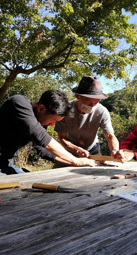 参加者が「自らの」ナイフを手にして、削り花作りや火起こし、木工にチャレンジ。そして皆が無傷で、各々の一日を過ごせました。